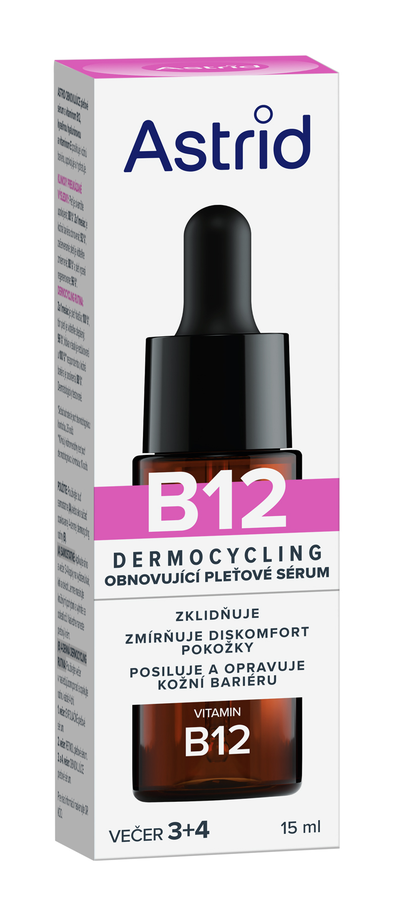 ASTRID obnovující pleťové sérum s vitamínem B12, kyselinou hyaluronovou a vitamínem E posiluje kožní bariéru, upokojuje a hydratuje.