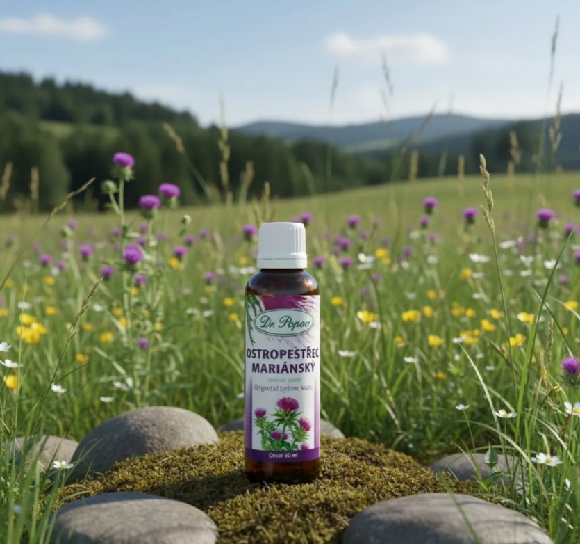 Složení: voda, jemný kvasný líh (alk. 40 % obj.), ostropestřec mariánský