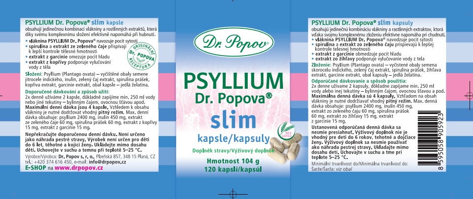 Psyllium Dr. Popova SLIM kapsle v sobě spojují pozitivní účinky vlákniny psyllium a další aktivní přírodní složky (spirulinu, extrakt ze zeleného čaje, garcinie a kopřivy) pro intenzivní hubnutí.