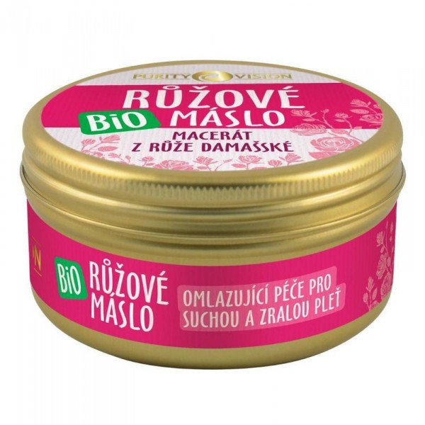 Bio Růžové máslo nabízí královskou péči, která je určená pro všechny typy pleti. Je výborným pomocníkem v péči o suchou a zralou pokožku, kterou zanechává vyživenou a hedvábně jemnou. Mezi přednosti másla patří regenerační vlastnosti, posílení přirozené pružnosti pleti a vyhlazení drobných vrásek.